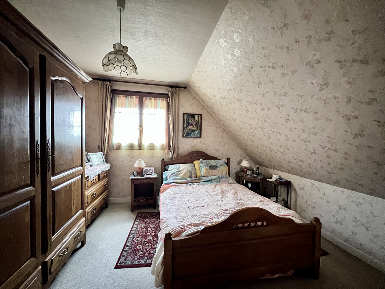 À l'étage, palier desservant deux chambres, un bureau, salle de bains avec toilettes